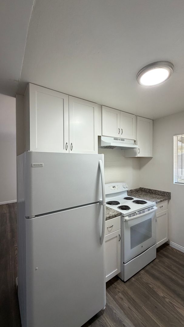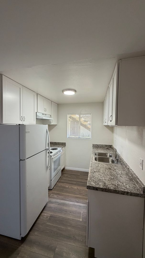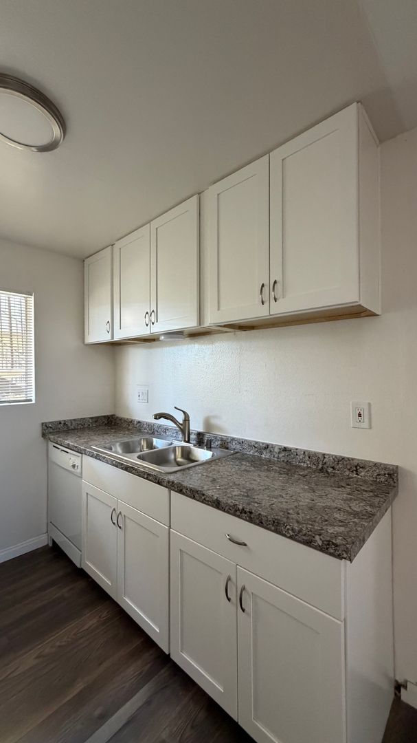 1BR/1BA apartment, downstairs unit in a 2-story apartment building. Freshly Painted, New Carpet, Refinished Cabinets, Dishwasher, Stove, Refrigerator, Blinds. Water and Trash included in the rent. Laundry Facilities on Site. No Pets/Service Animals Only.