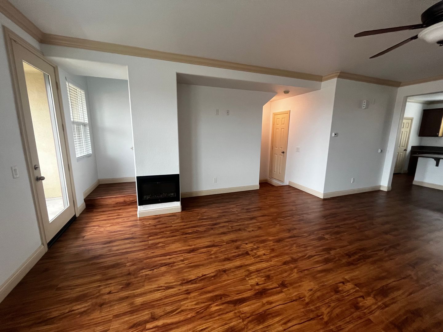 Expansive open-concept living area with a cozy fireplace, perfect for relaxing evenings.