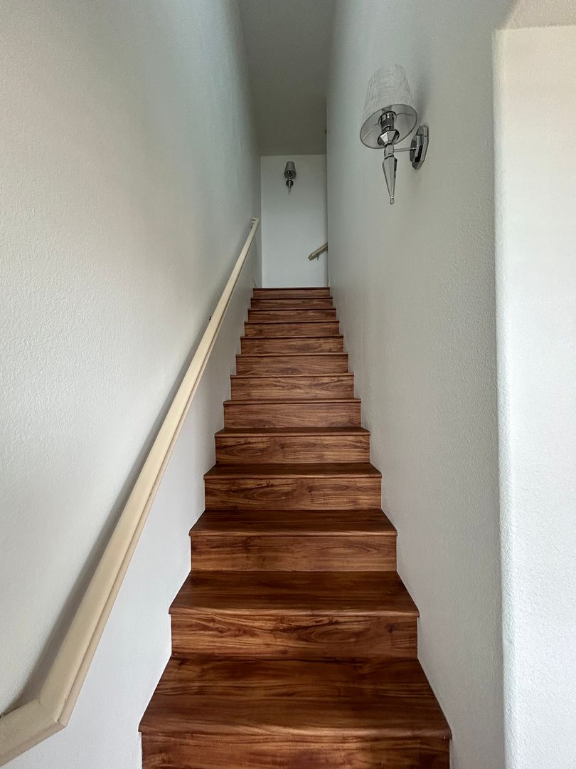 Spacious hallway with a charming Harry Potter-style storage closet.