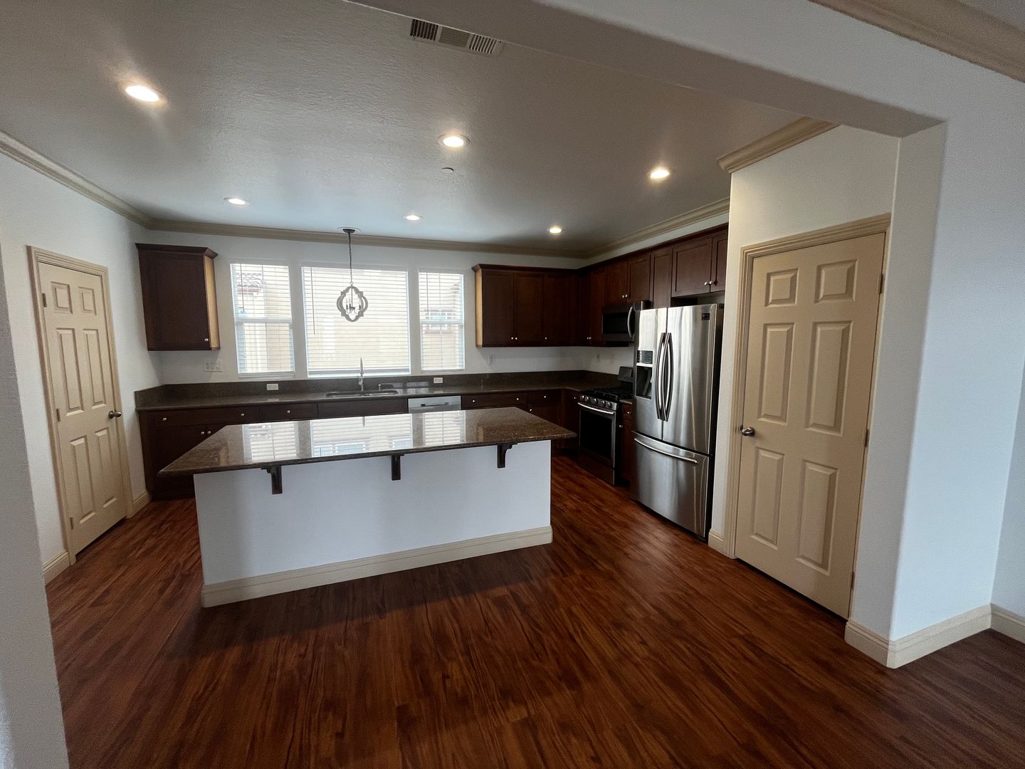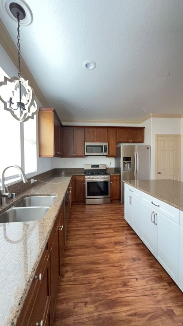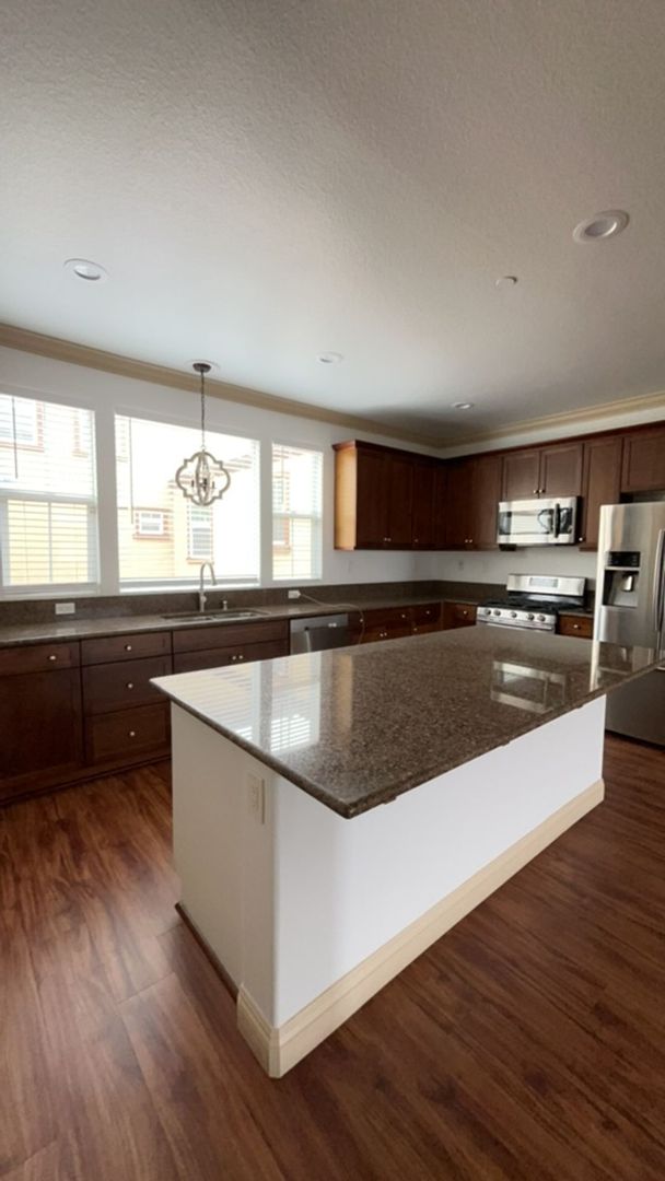 Gourmet kitchen featuring stainless steel appliances, two pantries, and a large island, built for entertaining.
