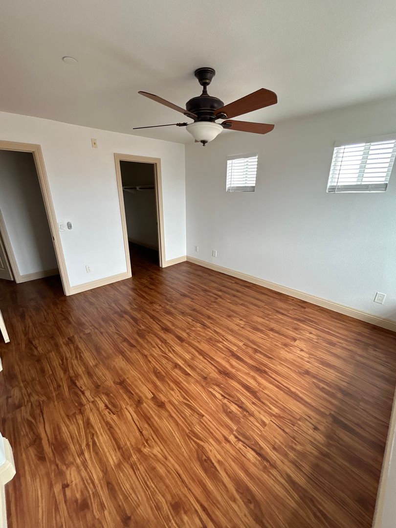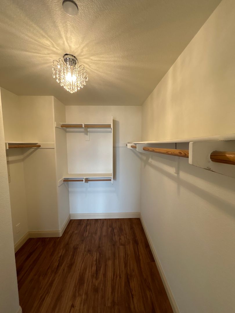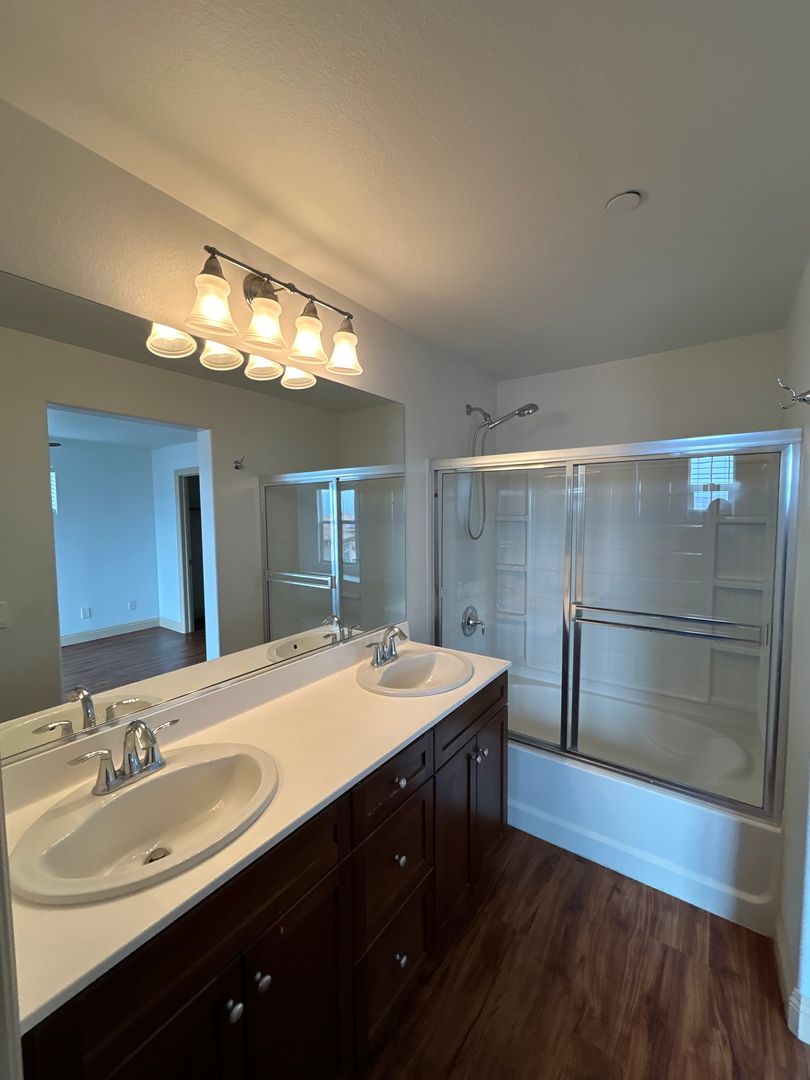 Luxurious primary suite with a walk-in closet and an attached full bath with two sinks for ultimate comfort.