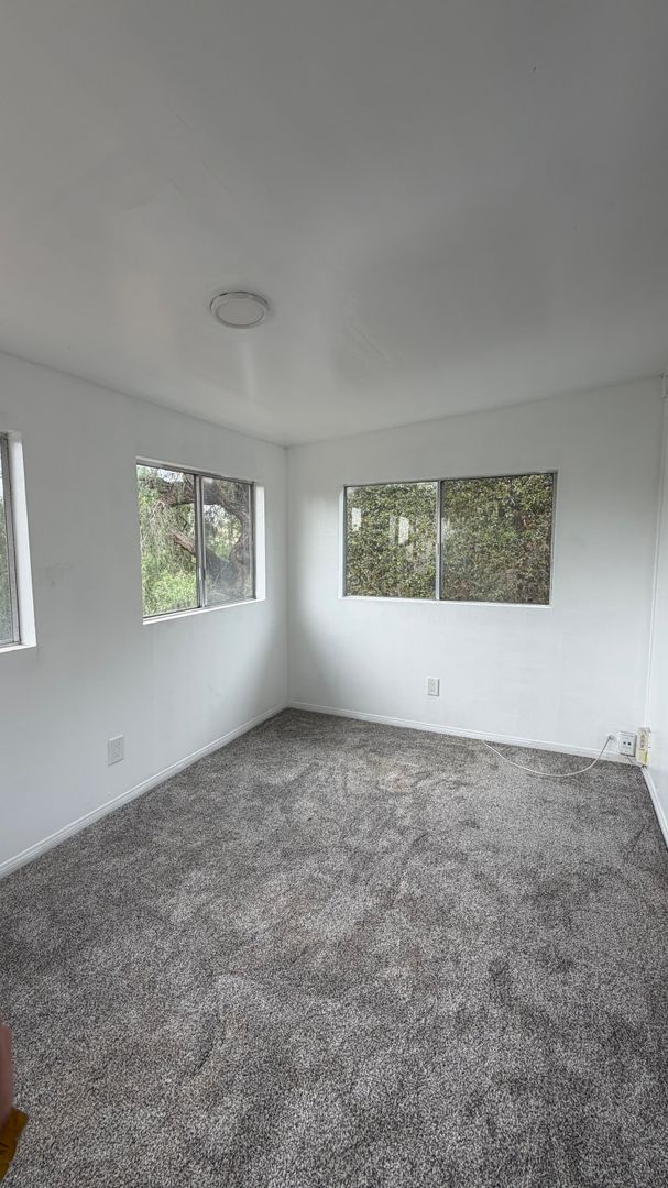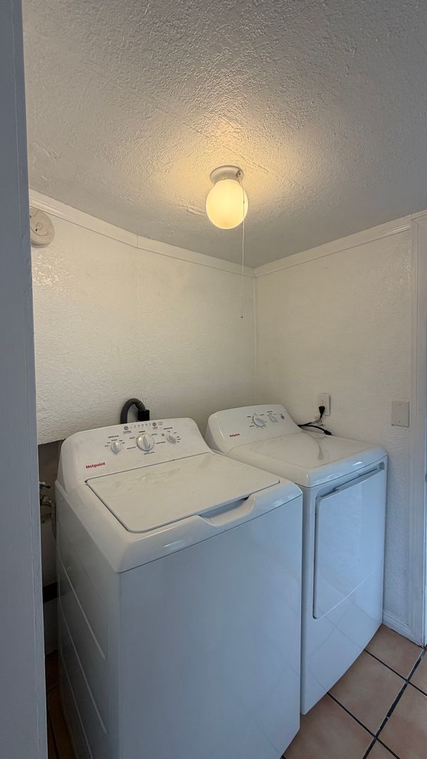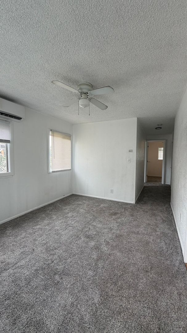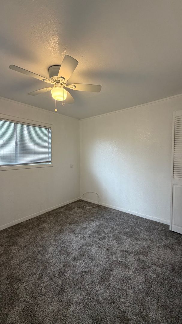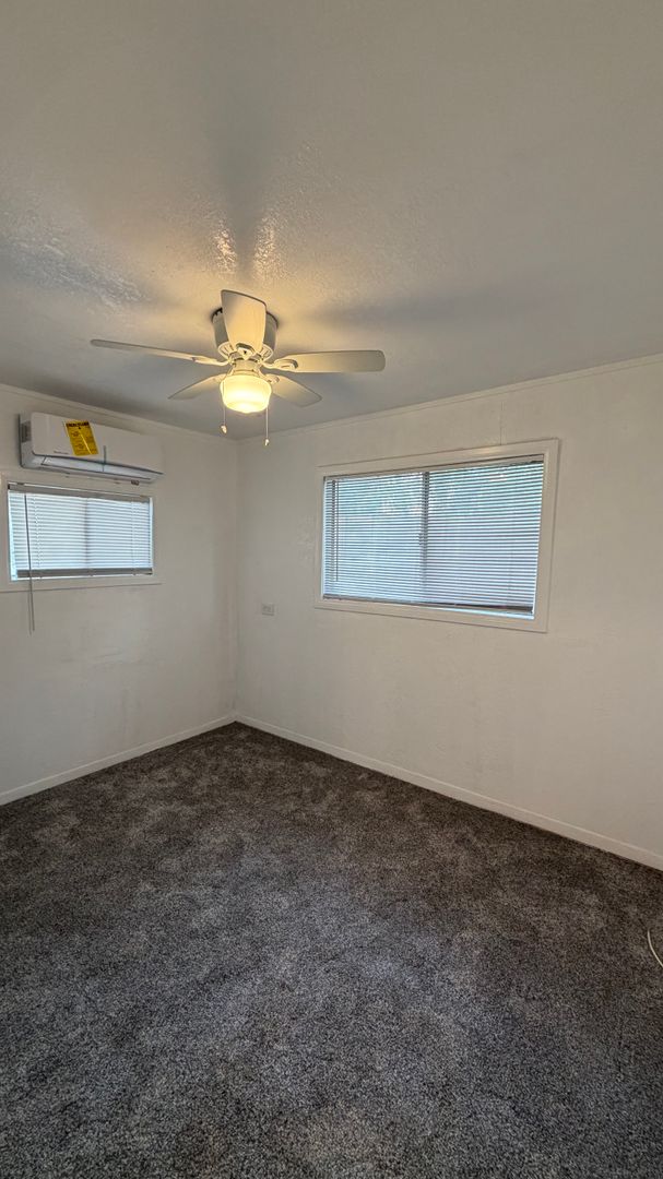 Charming 2-bedroom, 1-bath house featuring a combination of carpet and tile flooring throughout. The home includes an in-unit washer and dryer for added convenience, as well as a bright sunroom offering an uphill view—perfect for enjoying the morning sunrise. Both bedrooms are equipped with ceiling fans and air conditioning for year-round comfort. The kitchen includes a refrigerator and stove. This well-maintained home offers a comfortable layout with inviting living spaces.