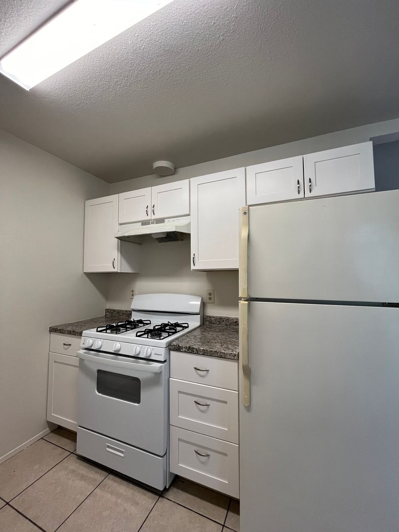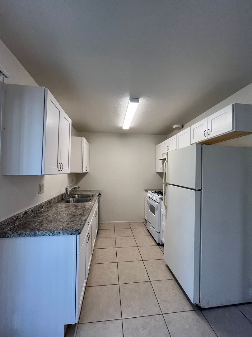 2BR/1BA Apartment includes - Stove, Refrigerator, Dishwasher, Blinds, Big Bedrooms with big closets, Tile flooring. Upstairs Corner Unit. Storage is not permitted outside. Washer & Dryer in facility. Use of Courtyard and Rec Room. Small pet accepted with deposit and insurance upon approval. Water and Trash paid. 1 Car Garage Included.